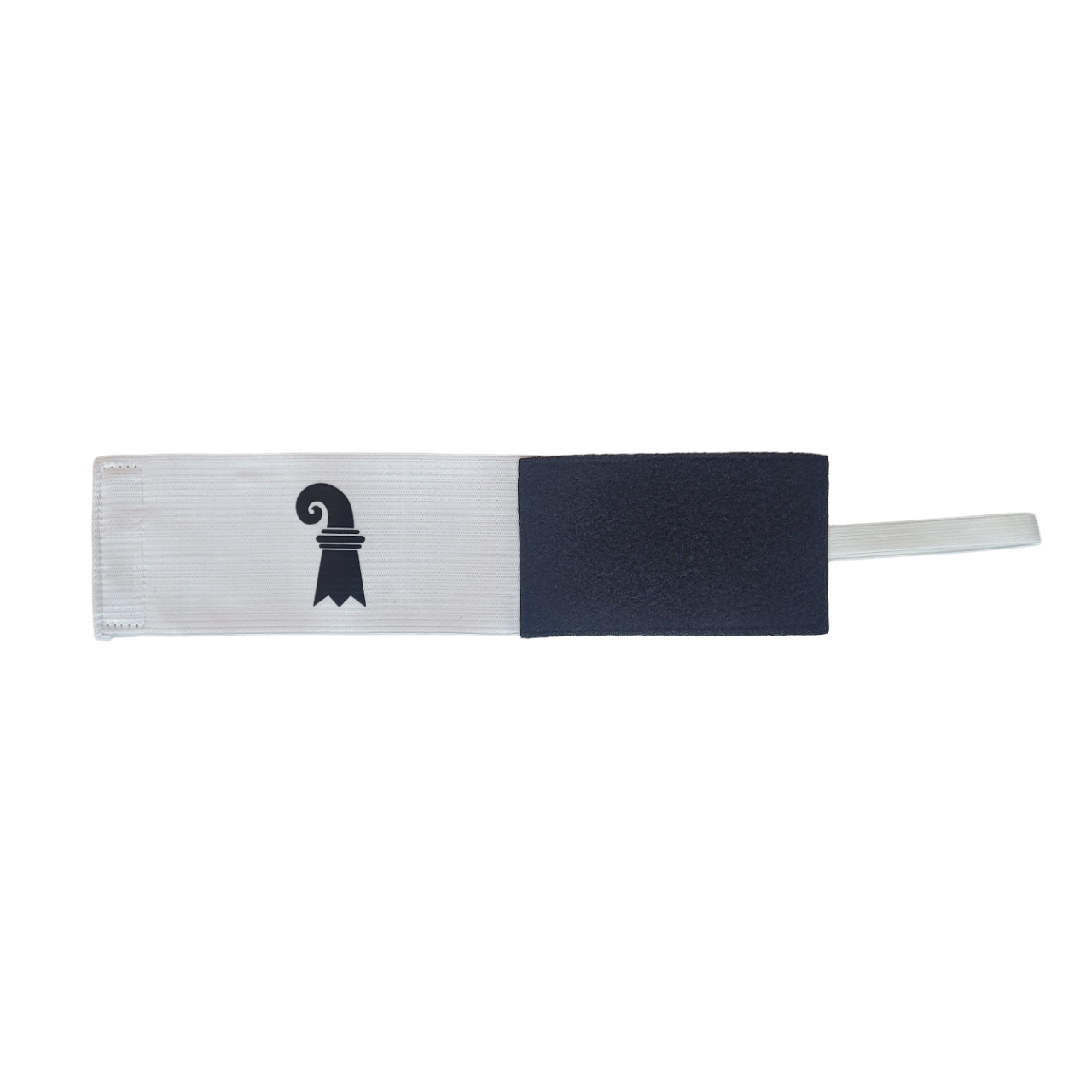 Weisse Kapitänsbinde mit aufgedrucktem Baslerstab.