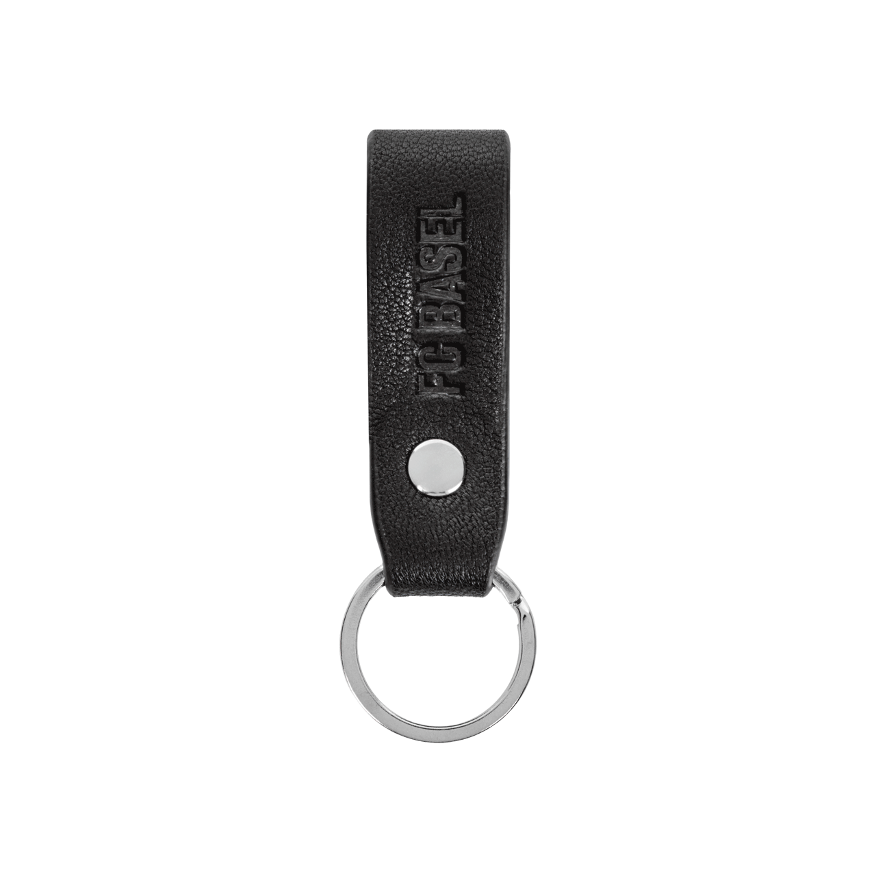 Schlüsselanhänger aus schwarzem Nappaleder mit FC Basel und 1893 Einprägung.