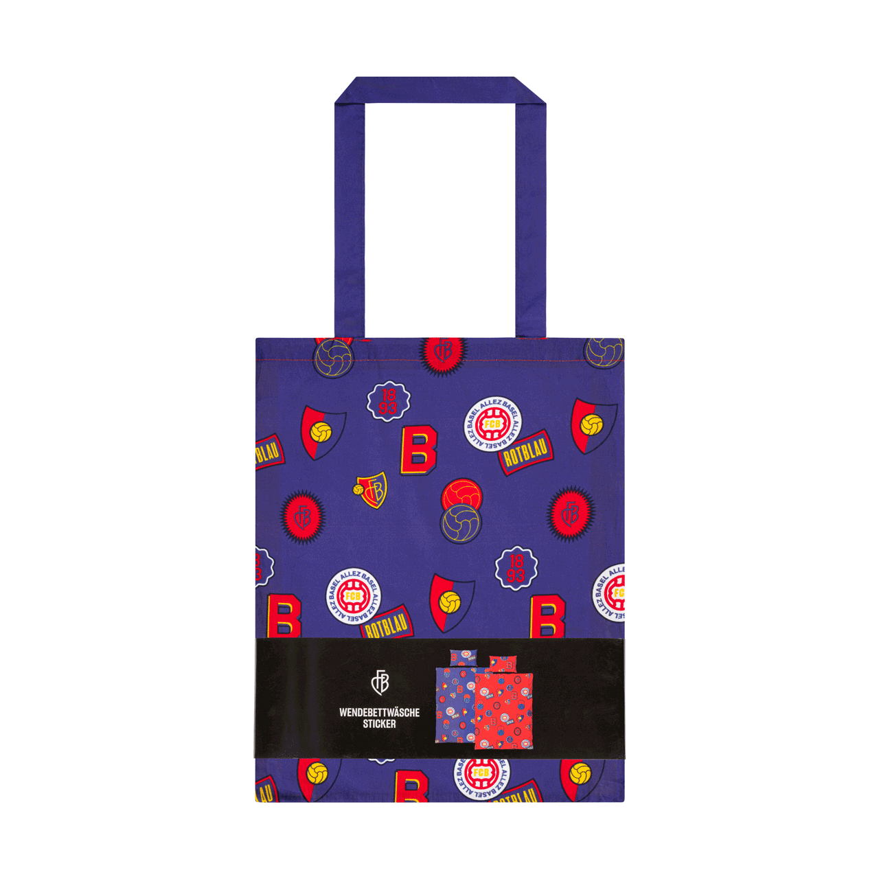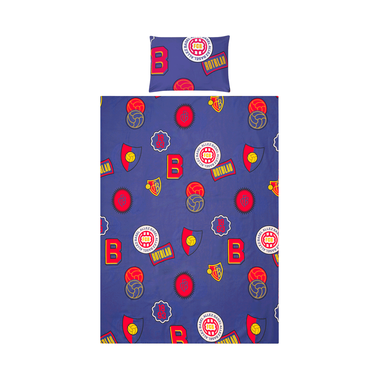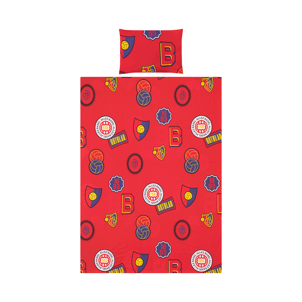 Es handelt sich um eine Wendebettwäsche mit einer roten und einer blauen Seite.