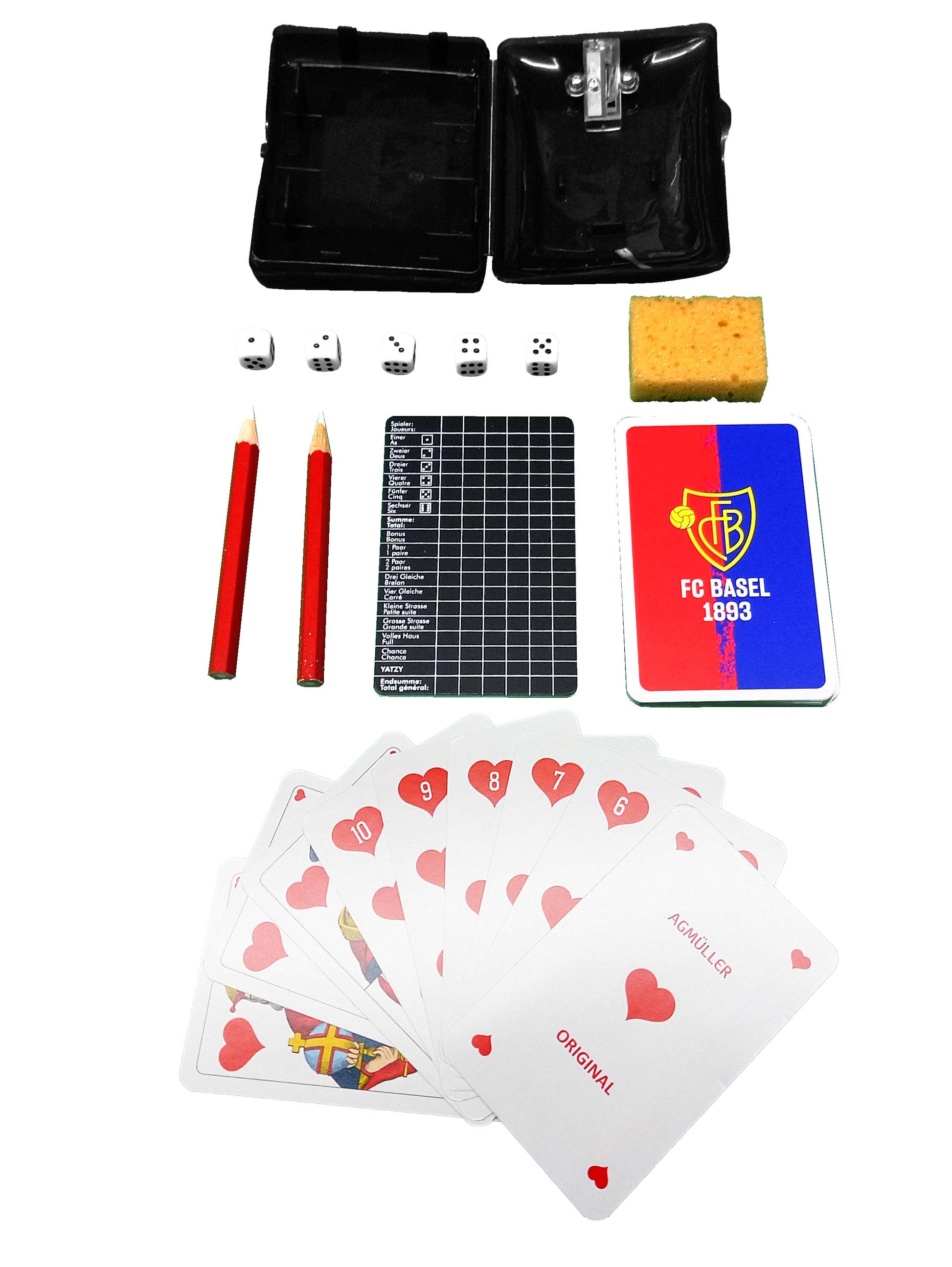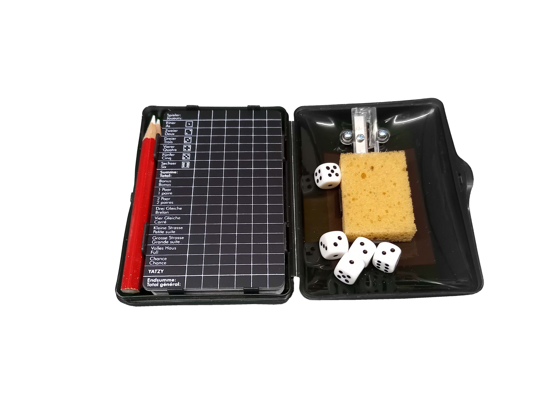Die kleine, handliche Jassbox mit zusätzlichen Yatzy-Utensilien.